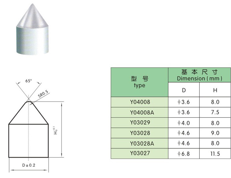 以上尺寸長度可調整,其中使用最多的YG6 Y03028常用數量分别爲:H=8 650粒/公斤;H=8.5 570粒/公斤;H=9 540粒/公斤,YG6 Y03028-8.5R 610粒/公斤。